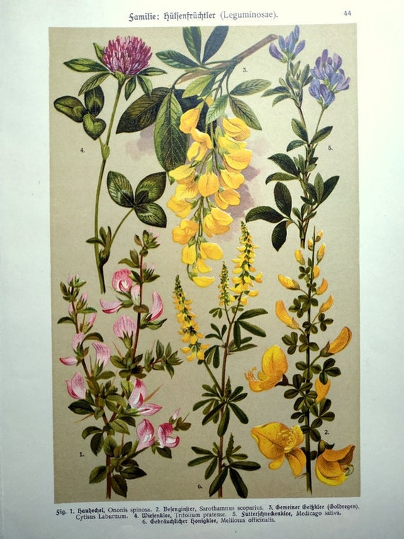 Antique Colored Flowers Print Original Plants Engraving Etsy